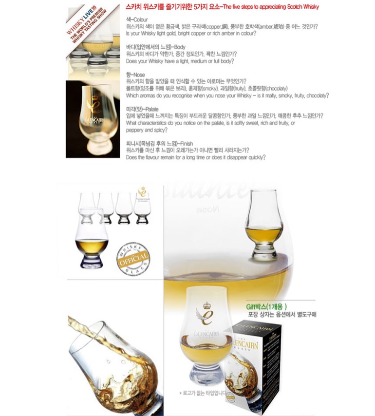 글렌캐런 글래스 3개와 3P 시음용 플라이트 트레이로 구성된 고급 선물세트