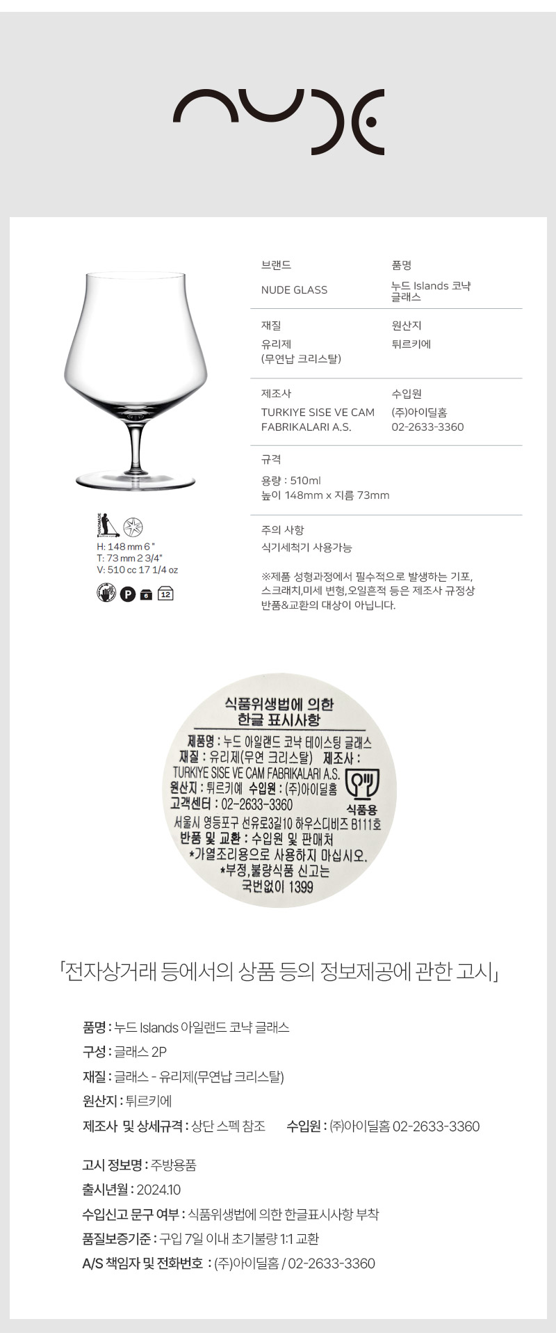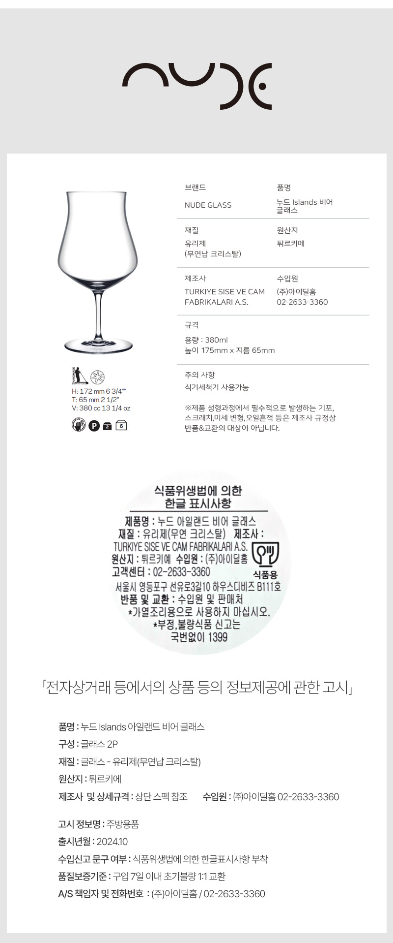 [Nude]누드 아일랜드 위스키 테이스팅 글래스 3종 숏(S),미듐(M),톨(T),비어,꼬냑 2P 세트