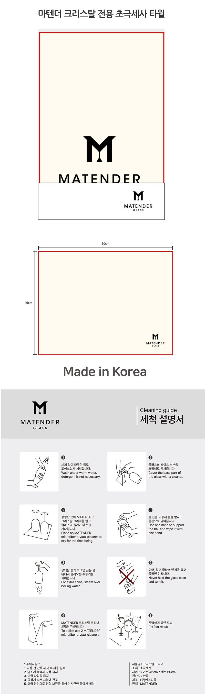 고급 글래스의 경우 전용 타월을 사용하시는 것이 기스방지 및 광택유지에 도움이 됩니다.