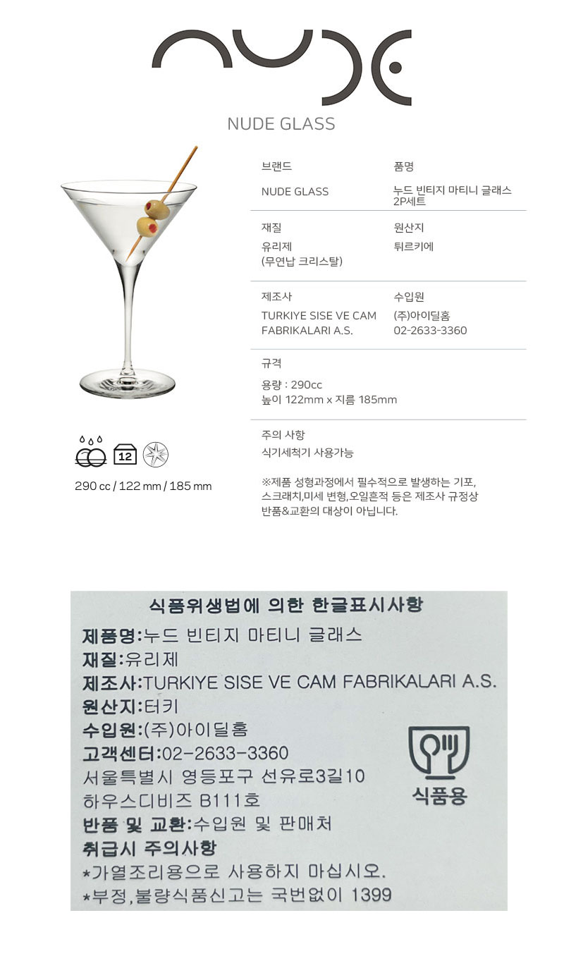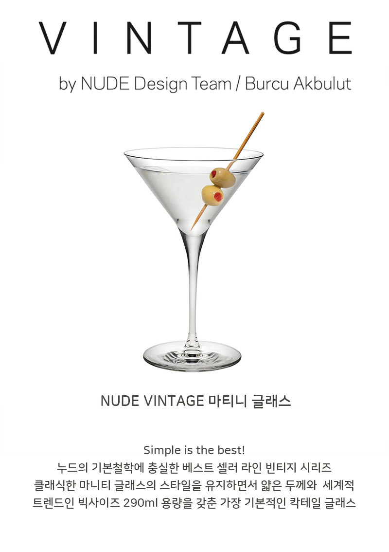 클래식한 마니티 글래스의 스타일을 유지하면서 얇은 두께와 세계적 트렌드인 빅사이즈 290ml 용량을 갖춘 가장 기본적인 칵테일 글래스