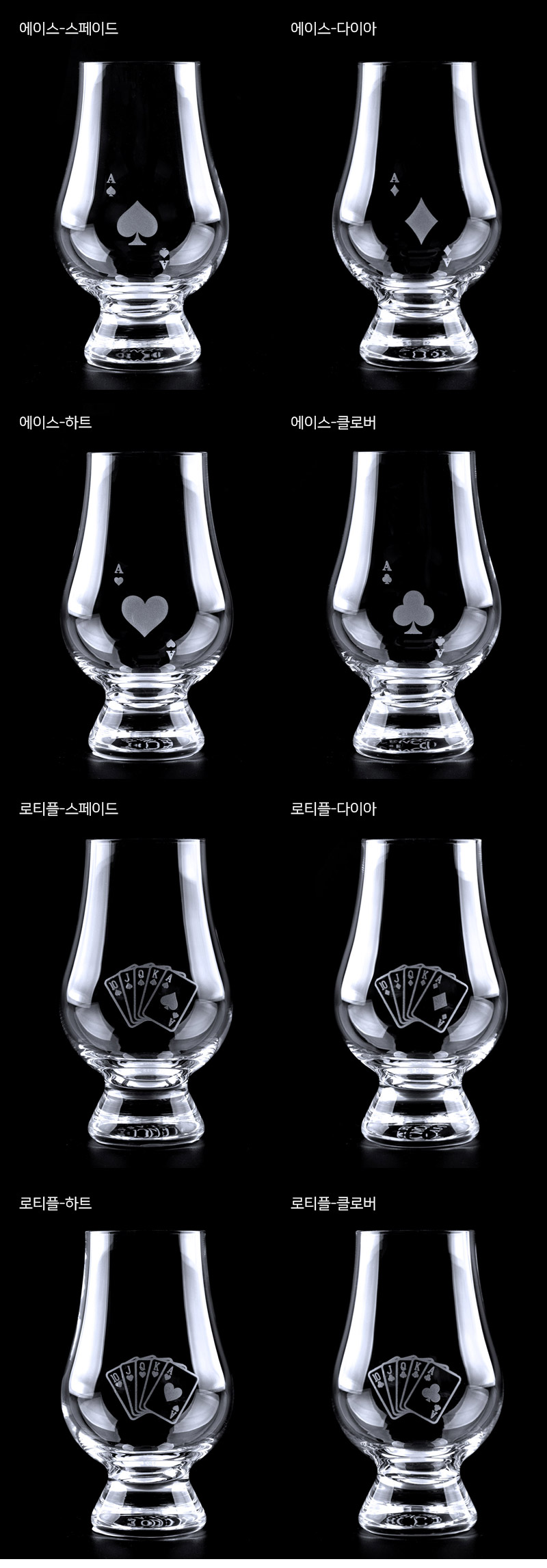 글렌캐런 아트컬렉션 에이스포커 8종, 포커 카드 위스키글라스, 로열스트레이트 플러시 글래스, 글렌캐런 위스키잔, 포커 디자인 기념 글라스