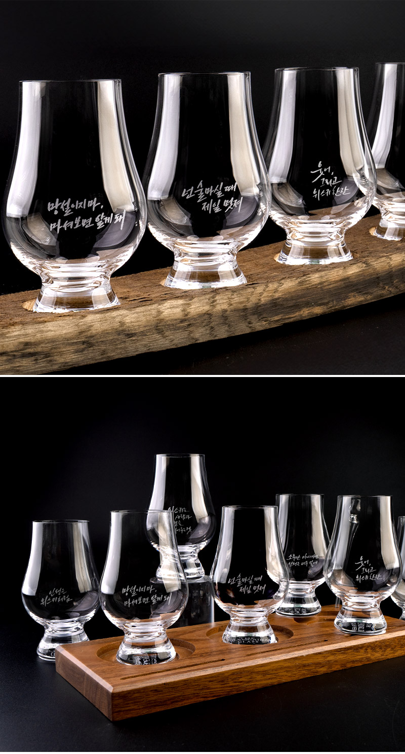 글렌캐런 캘리그라피 위스키글라스, 레이저 각인 글라스, 아트컬렉션 위스키잔, 문구각인 선물용 글래스, 명언 캘리그라피 술잔