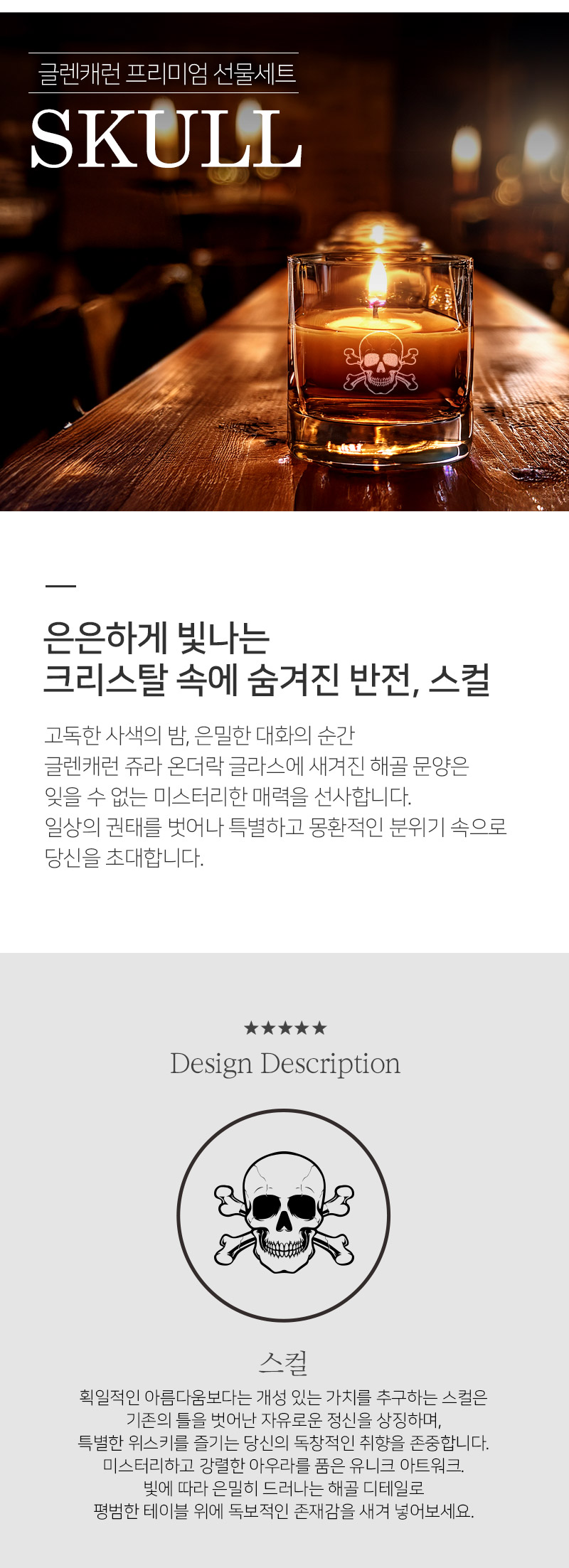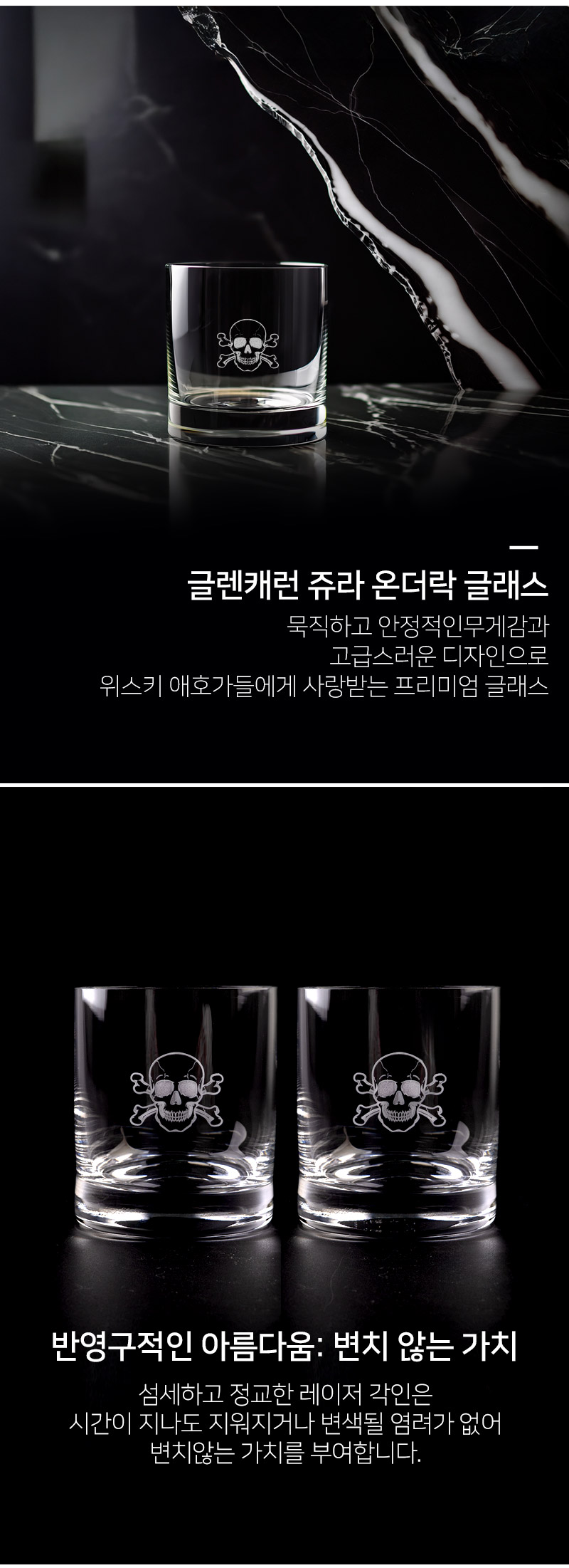 글렌캐런 쥬라 온더락 스컬 에디션, 해골 각인 위스키잔, 레이저 각인, 프리미엄 글래스, 선물 세트