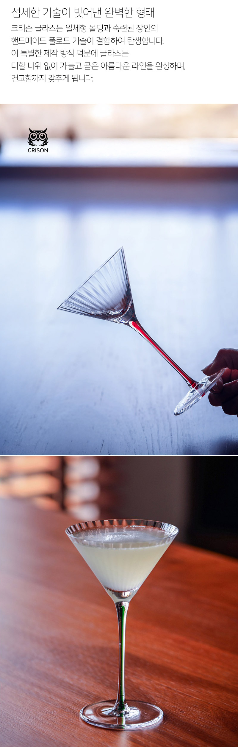 적당한 깊이와 입구 각도로 마티니, 진, 베르무트에 최적고급 크리스탈 소재 사용