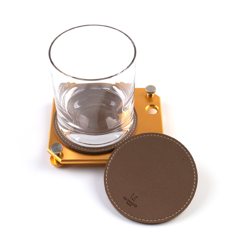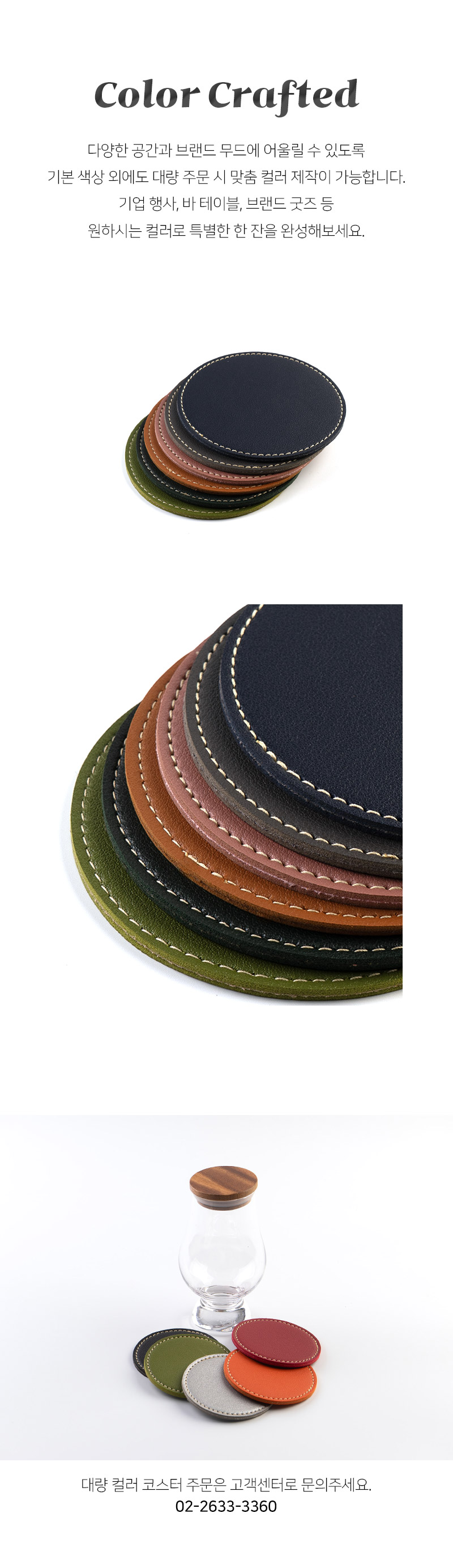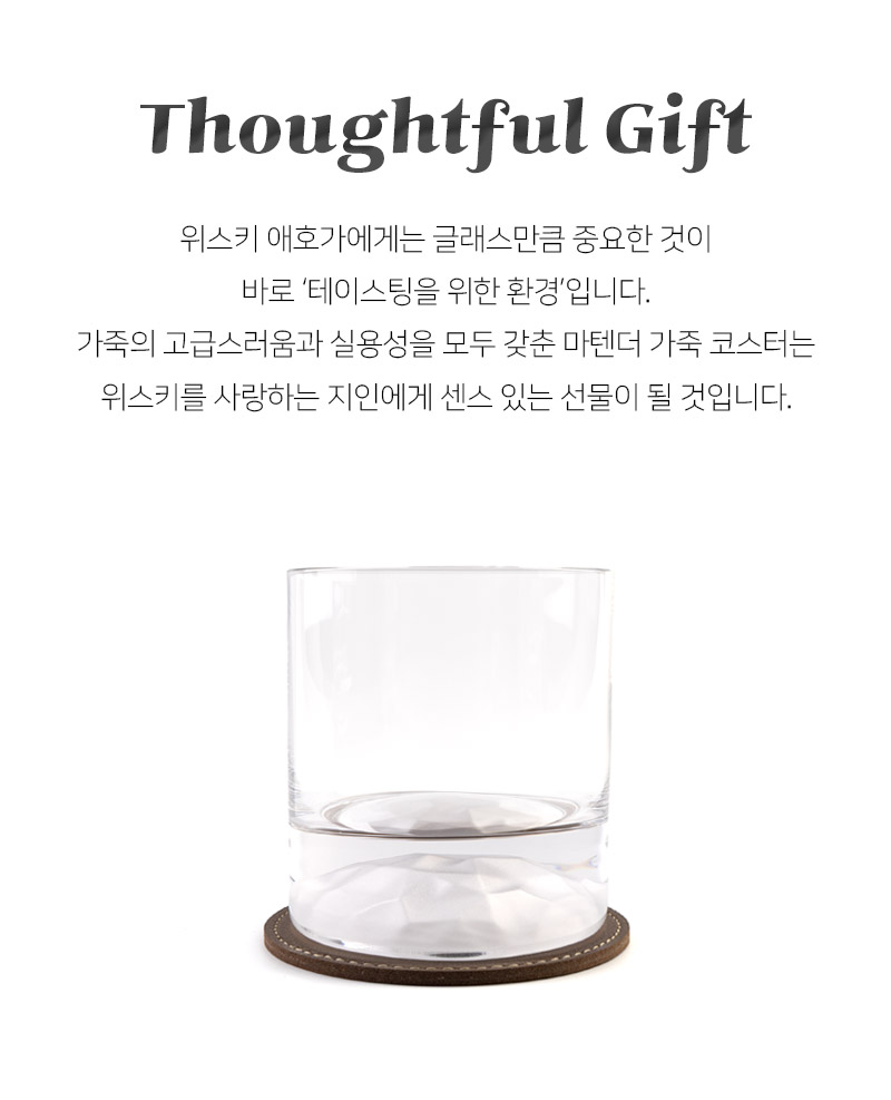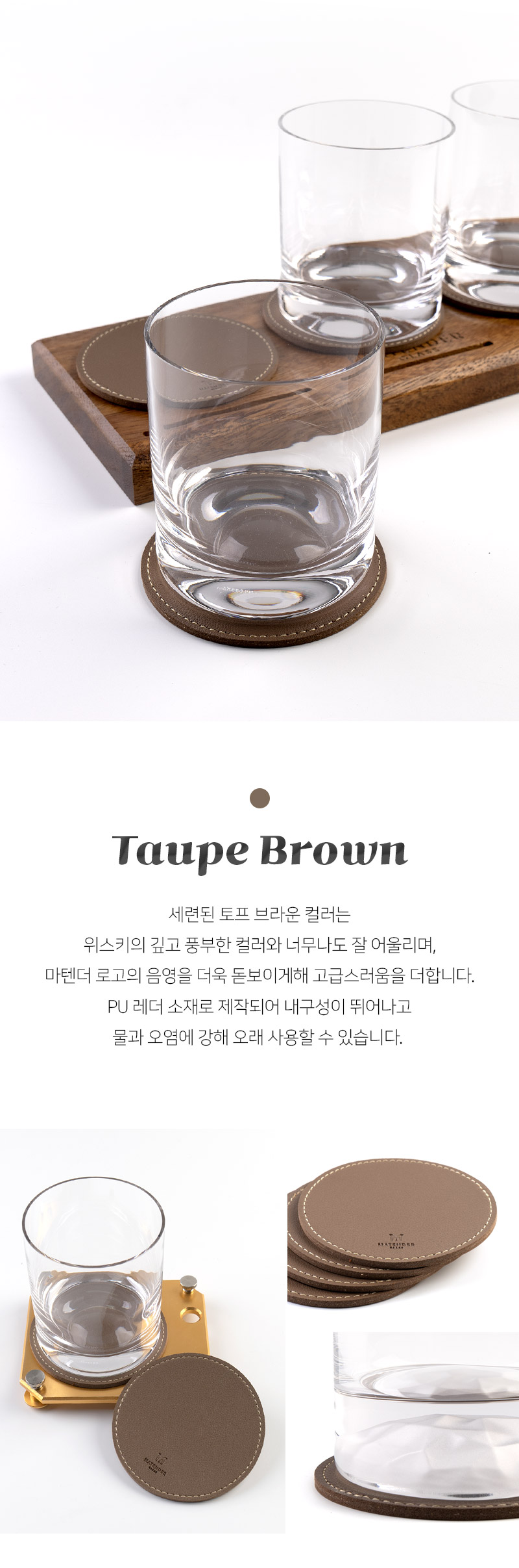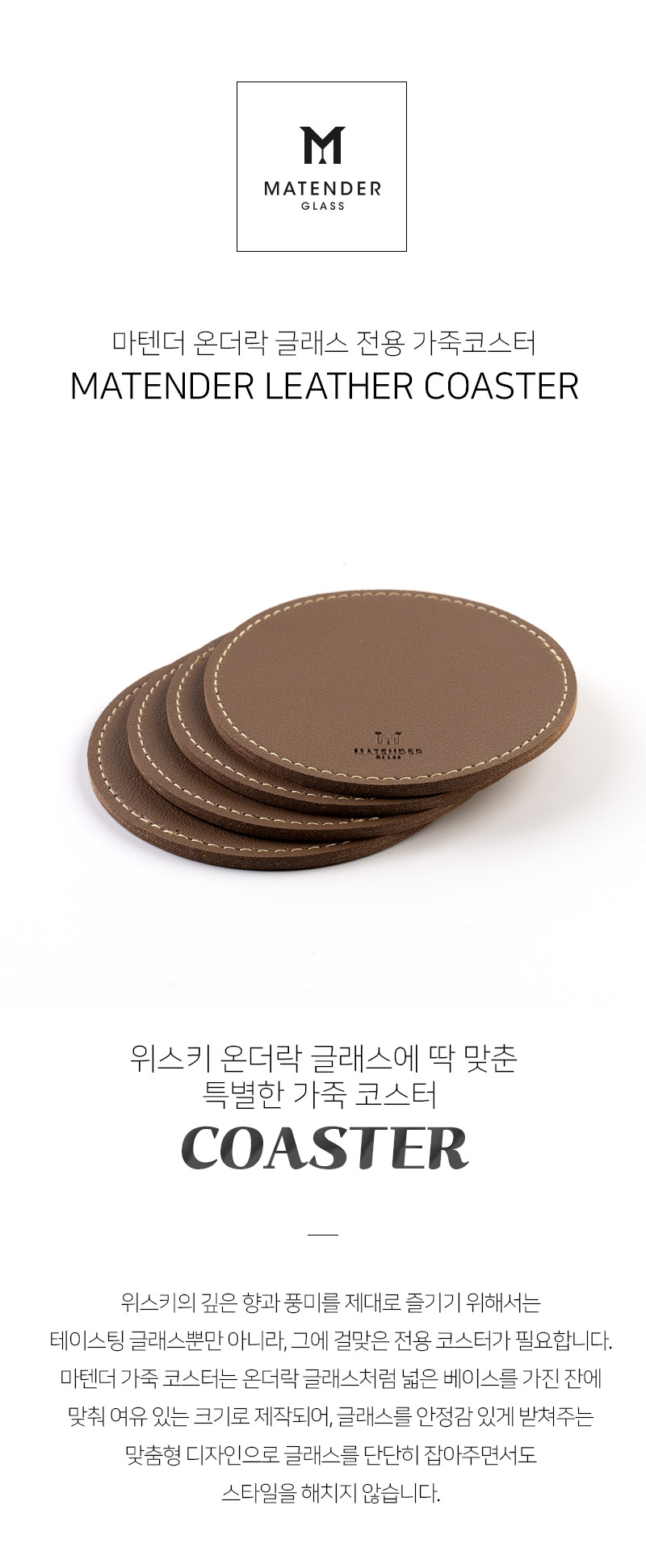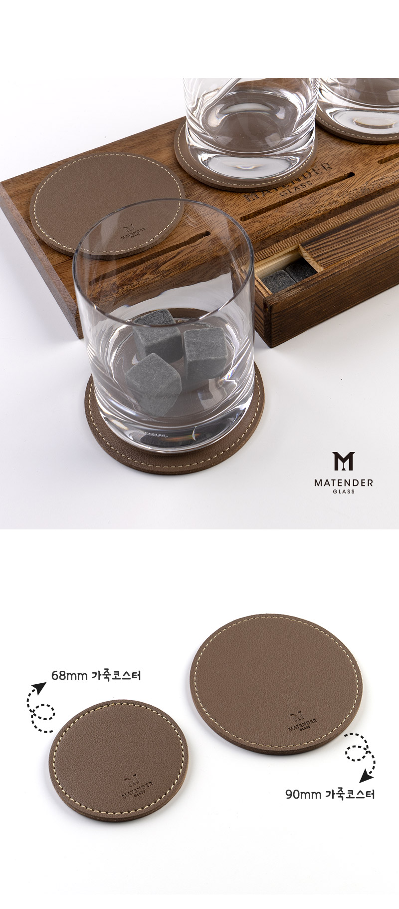 위스키 온더락 글래스에 최적화된 사이즈로 물과 오염에 강한 PU레더 소재 가죽 코스터
