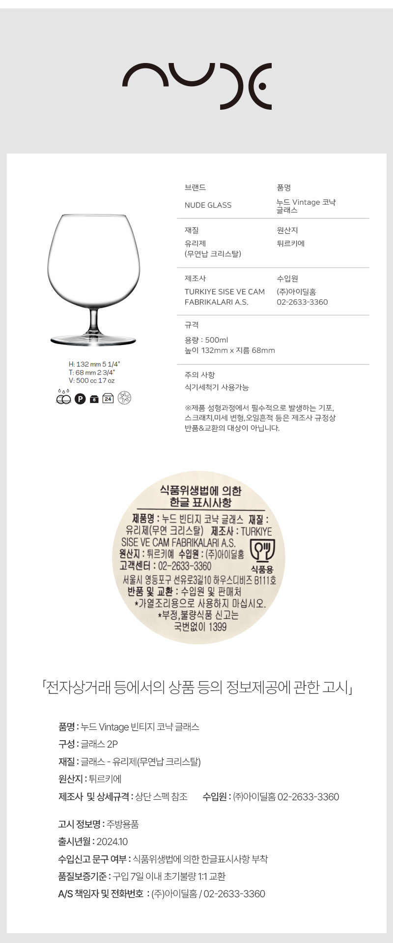 넉넉한 500ml 용량과 무연납 크리스탈의 투명함이