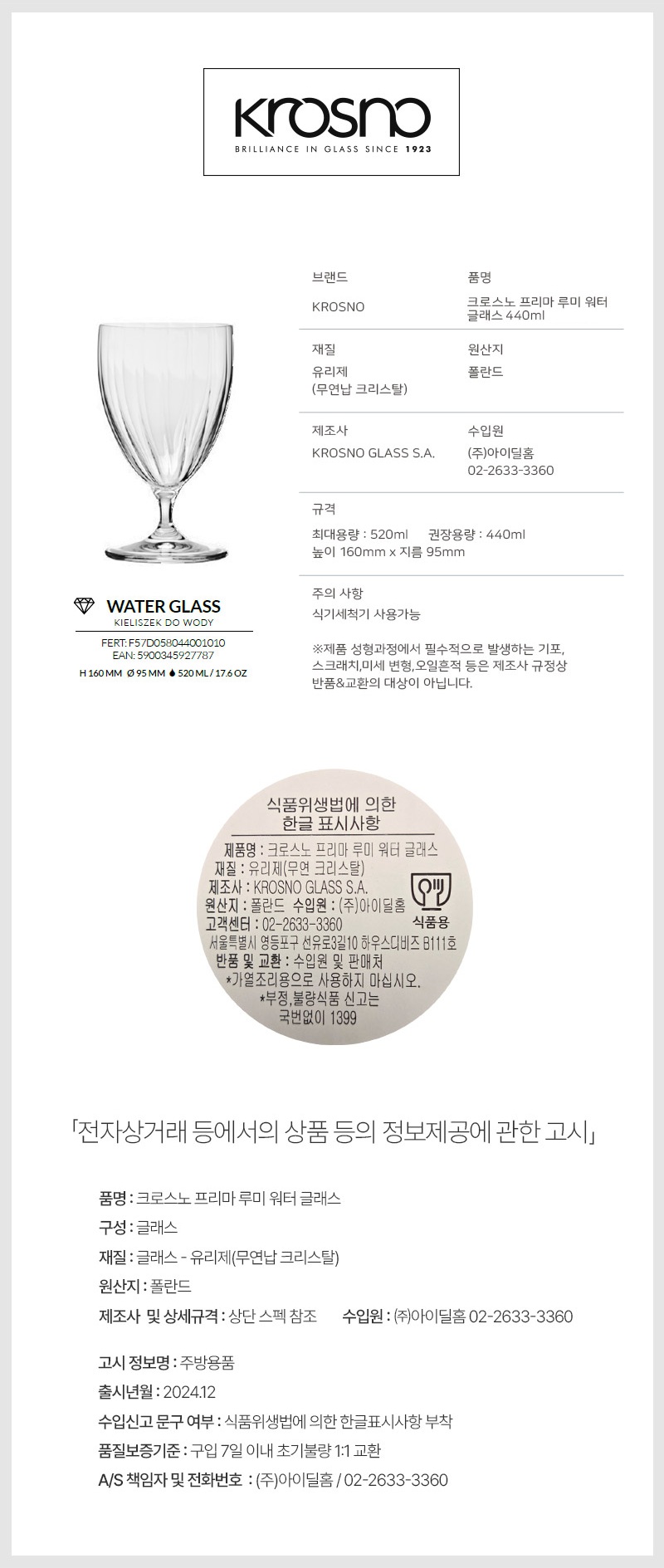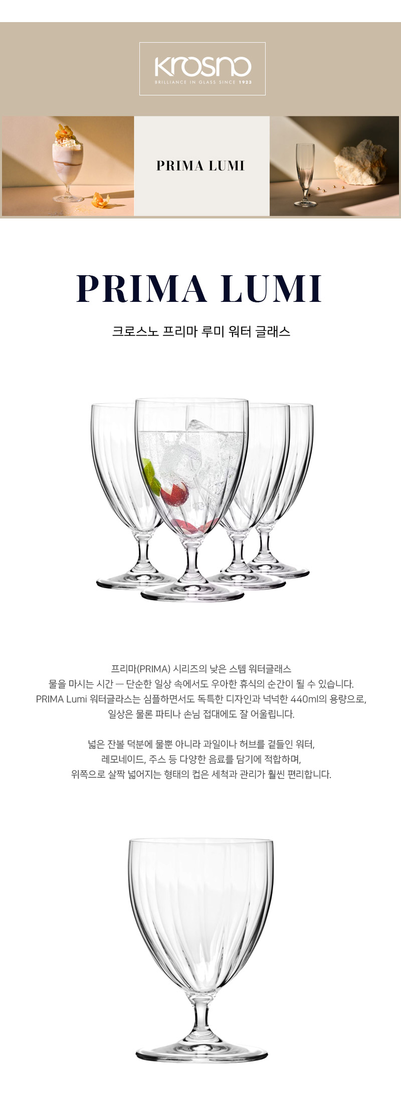 우아한 실용미를 담은 KROSNO PRIMA Lumi 워터글래스.