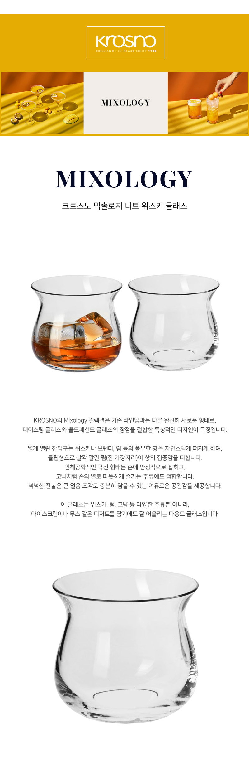 크로스노 글래스, 믹솔로지 글래스, 테이스팅 글래스, 위스키 글래스, 럼 글래스, 코냑 글래스, 위스키 시음잔,
