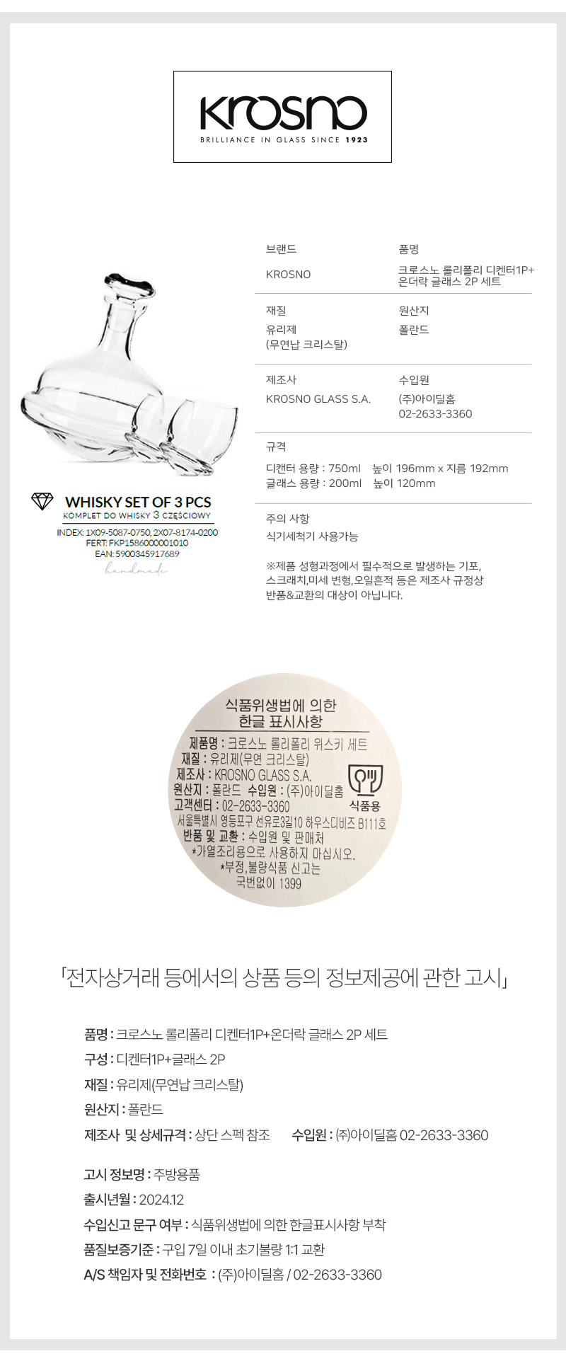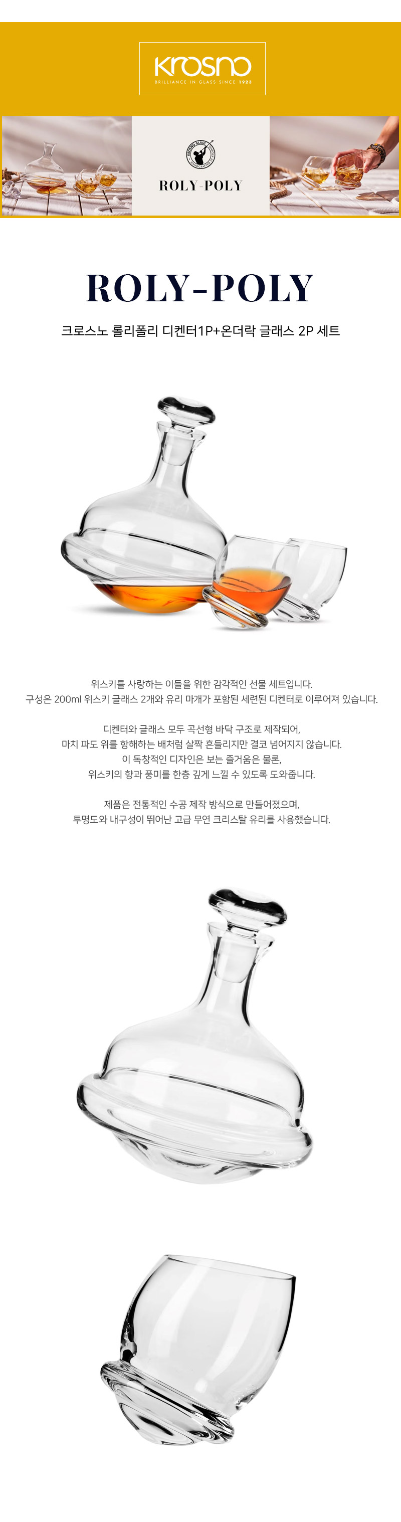 크로스노 위스키 세트, 롤리폴리 글래스, 위스키 디캔터, 위스키 카라페, 위스키 선물세트, 무연납 크리스탈 글래스,