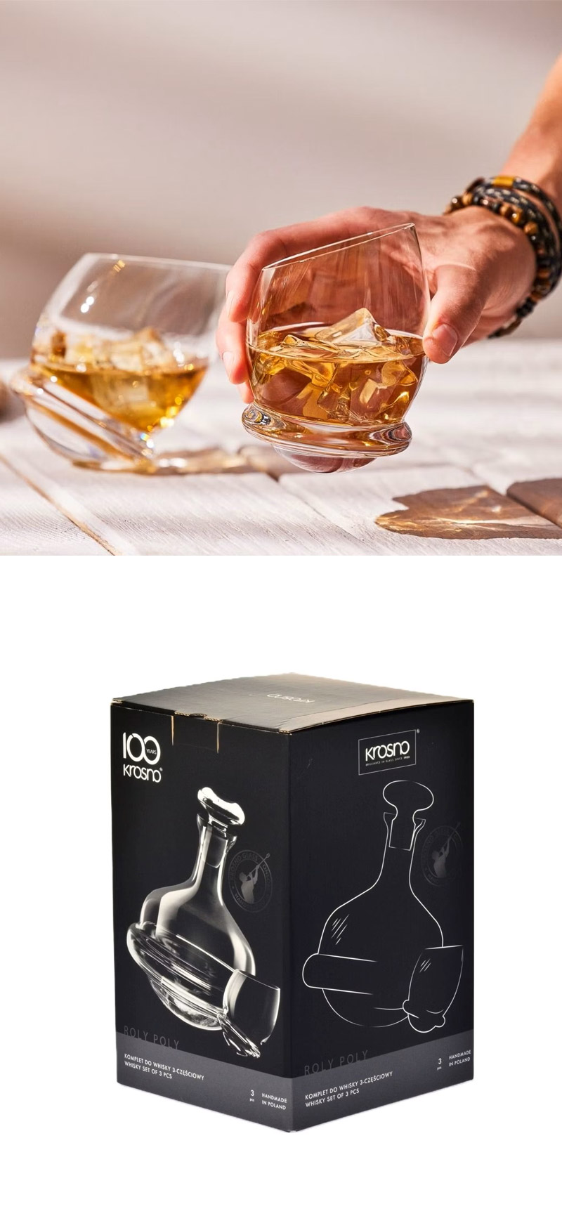 수공 제작 유리, 흔들리는 글래스, 위스키 애호가 선물, 폴란드 유리 브랜드, 고급 디캔터 세트, 홈바 선물용, 유리 마개 포함 카라페