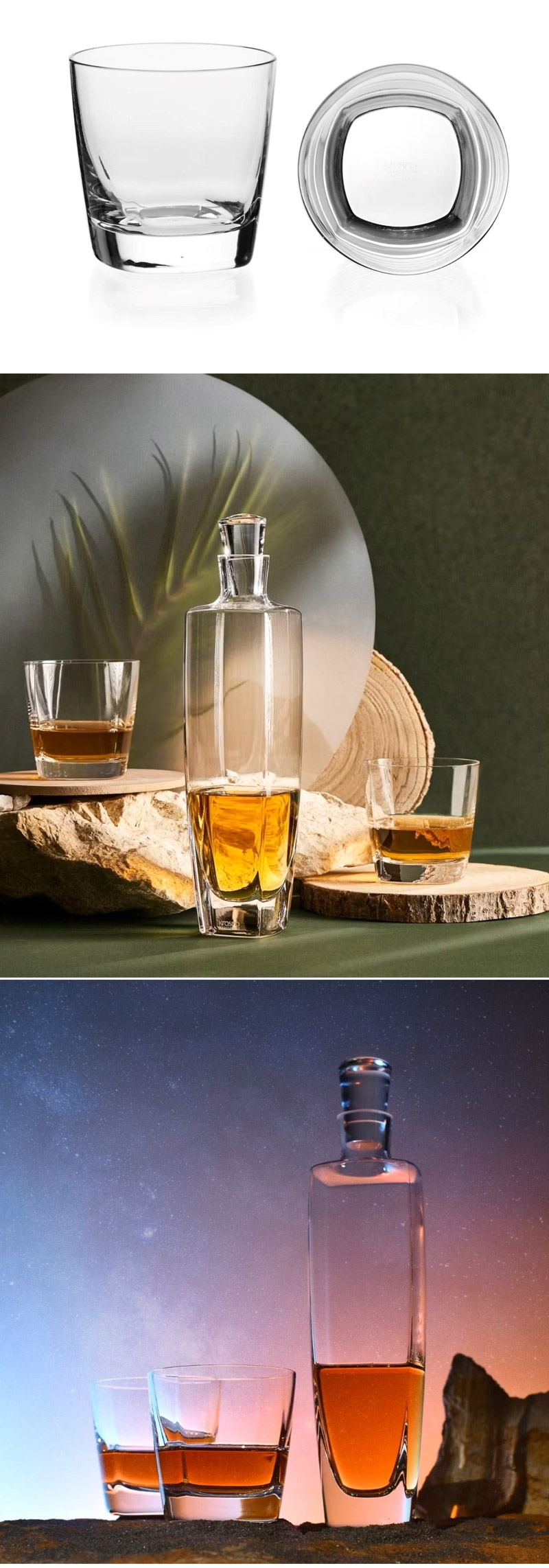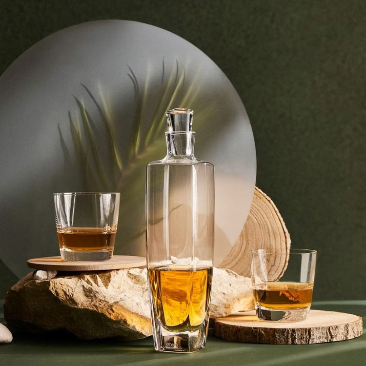 불필요한 장식을 덜어낸 미니멀한 실루엣과 투명한 유리 표면이 위스키의 색과 향을 온전히 드러냅니다.