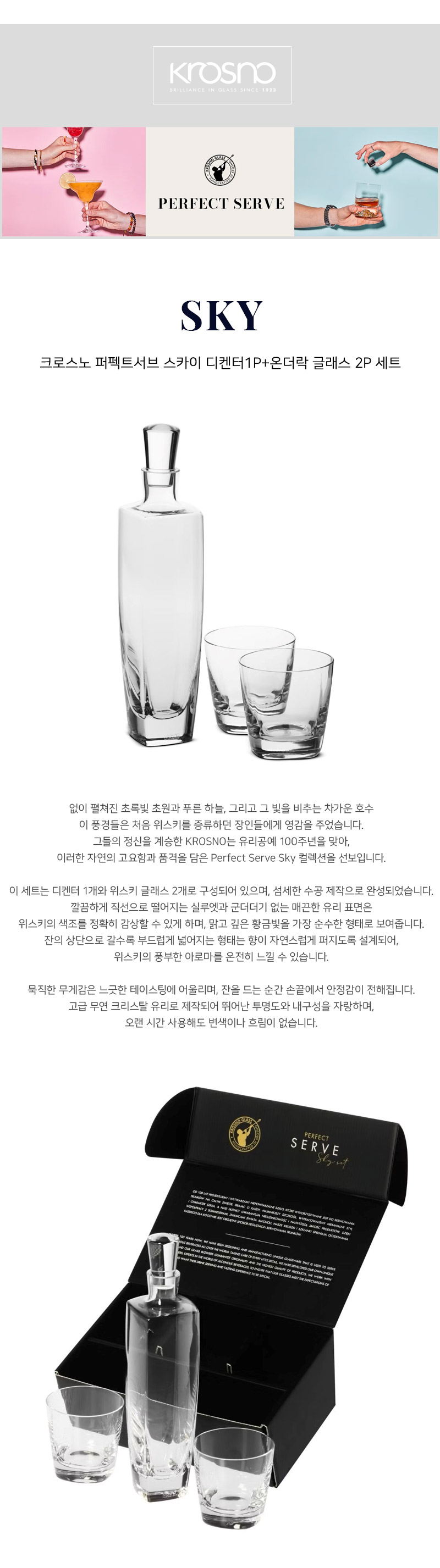 크로스노 위스키 세트, 스카이 위스키 세트, 퍼펙트 서브 글래스, 무연납 크리스탈 카라페, 수공 제작 유리잔,
