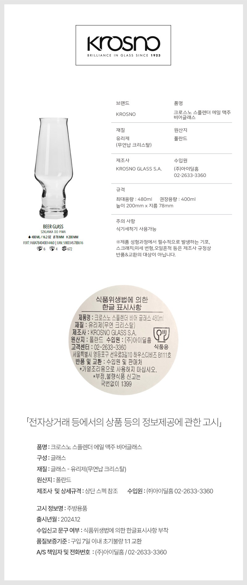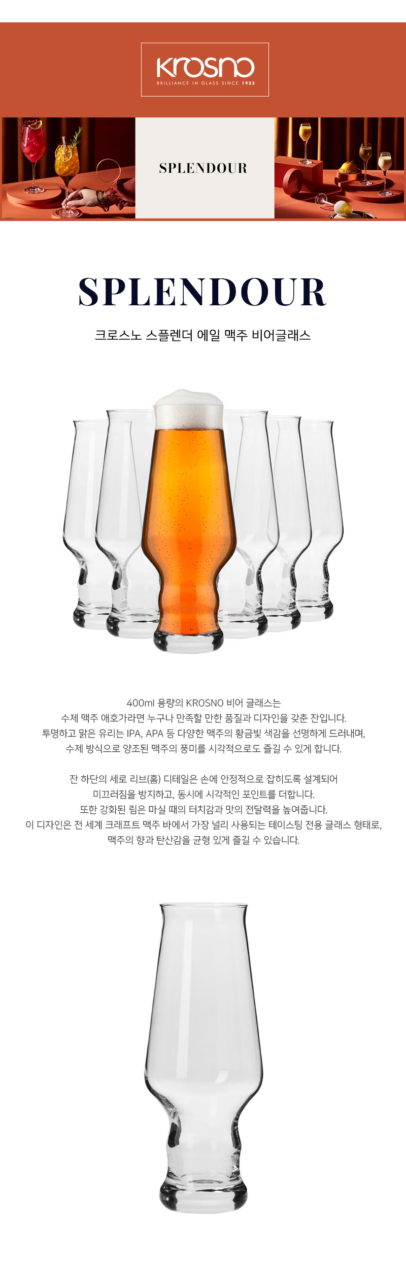 KROSNO 에일 맥주 비어글래스는 수제 맥주의 색, 향, 질감을 완벽히 즐길 수 있도록 설계되었습니다.