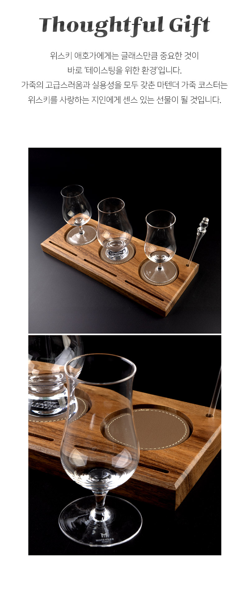 글렌캐런 글래스 세트, 위스키 글라스 세트, 글렌캐런 위스키잔, 가죽 코스터 세트, 월넛 우드캡,