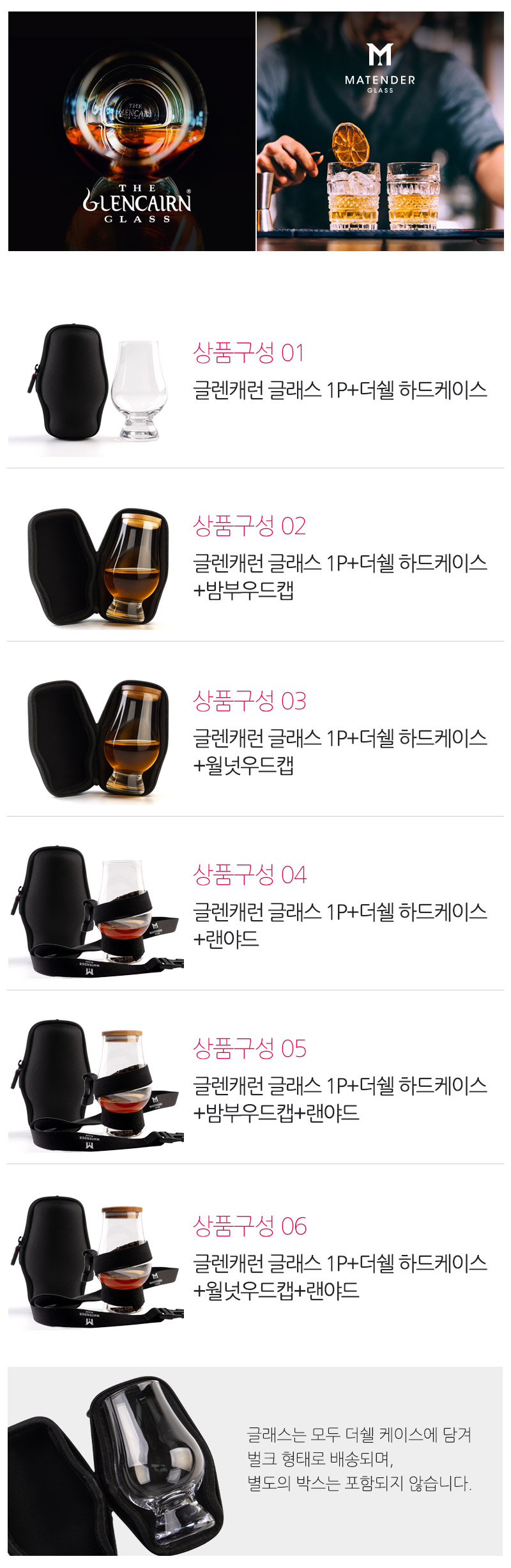 글렌캐런 글래스, 위스키 테이스팅 글래스, 휴대용 하드케이스, 마텐더 더쉘 케이스, 우드캡 선택, 랜야드 구성,