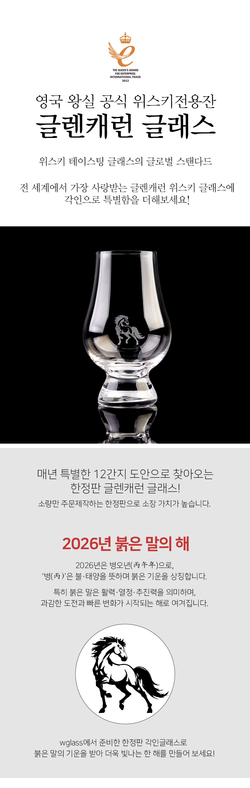 글렌캐런 글래스, 2026 붉은 말의 해, 위스키 글래스, 테이스팅 글래스, 한정판 글래스,