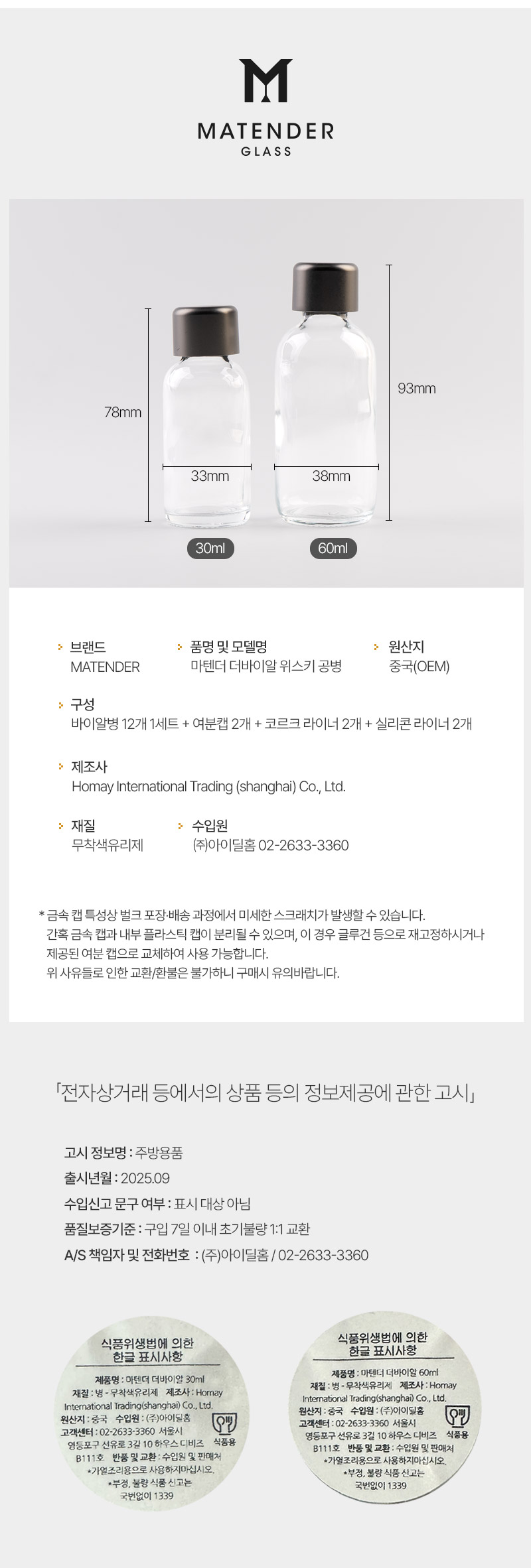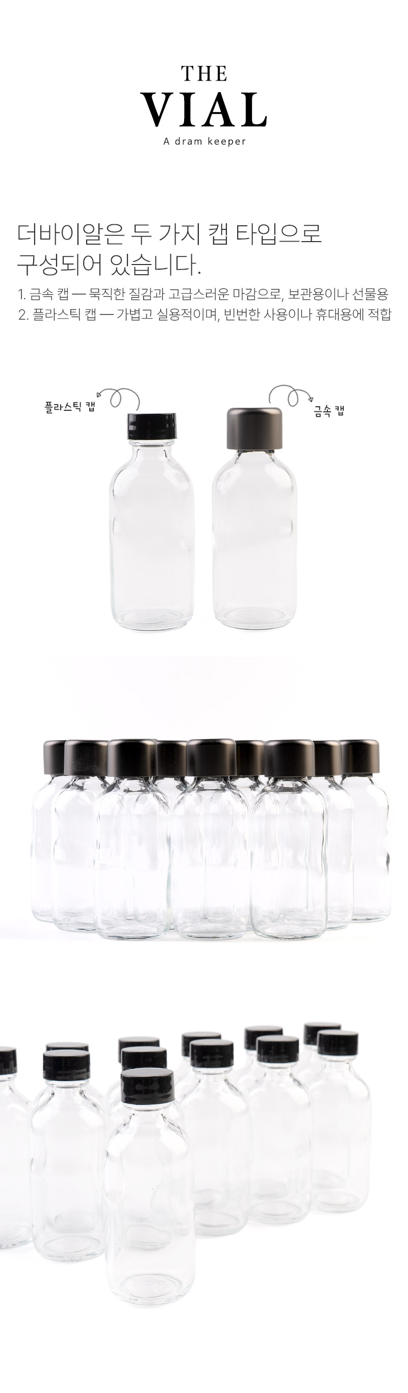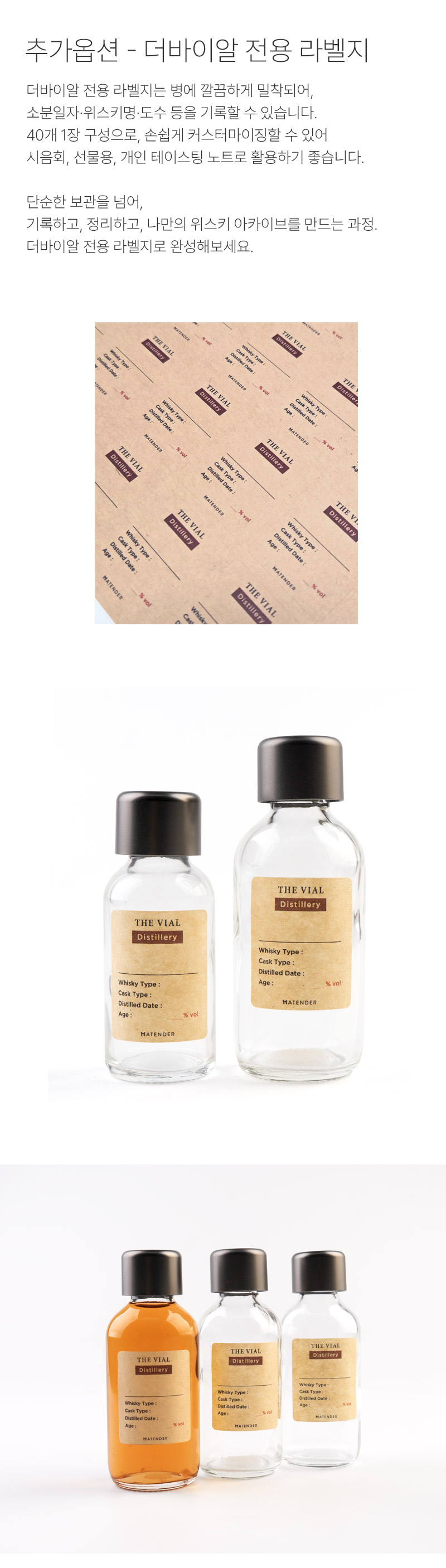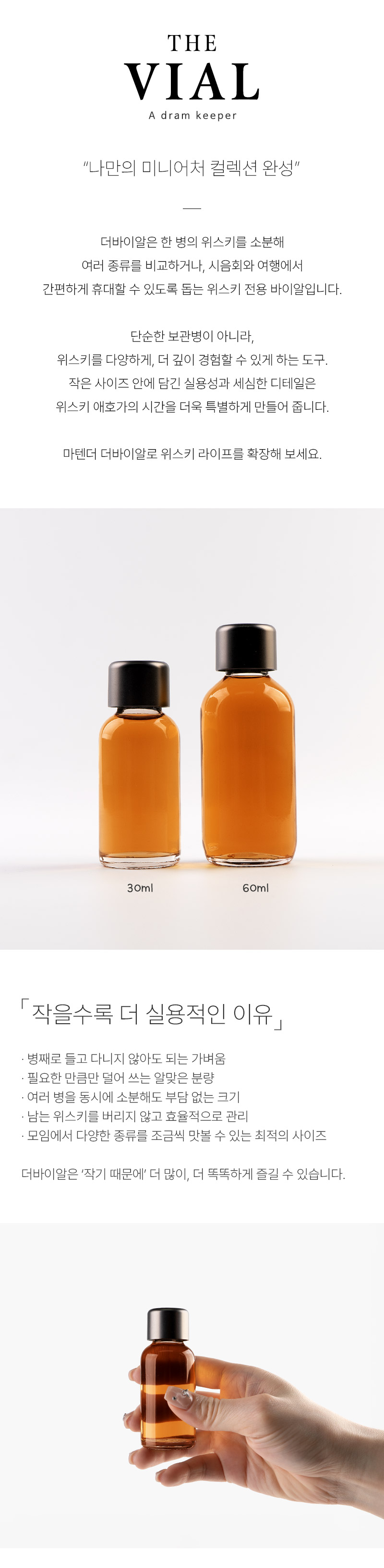 30ml 바이알과 다양한 위스키 미니어처까지 폭넓게 호환됩니다.