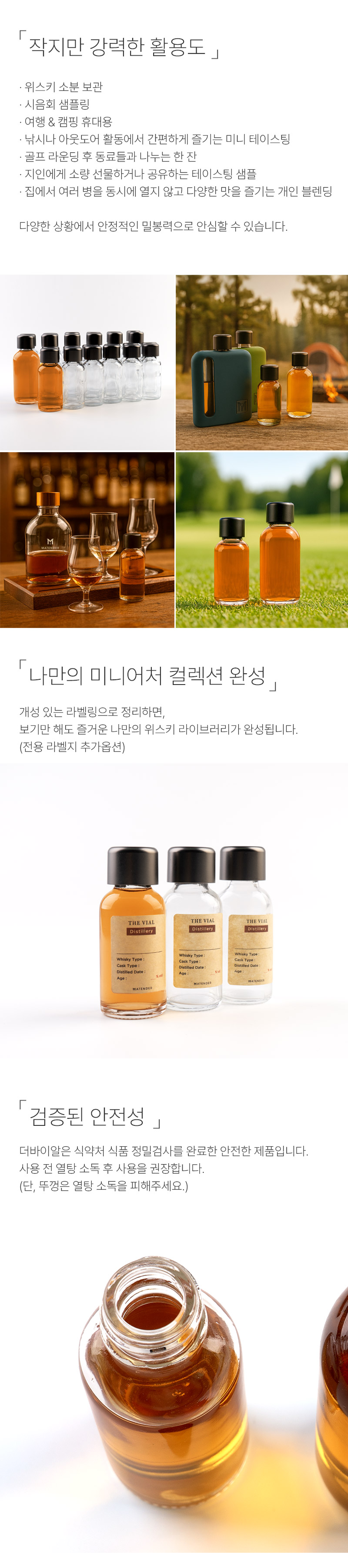 30ml 바이알과 다양한 위스키 미니어처 까지 폭넓게 호환됩니다.