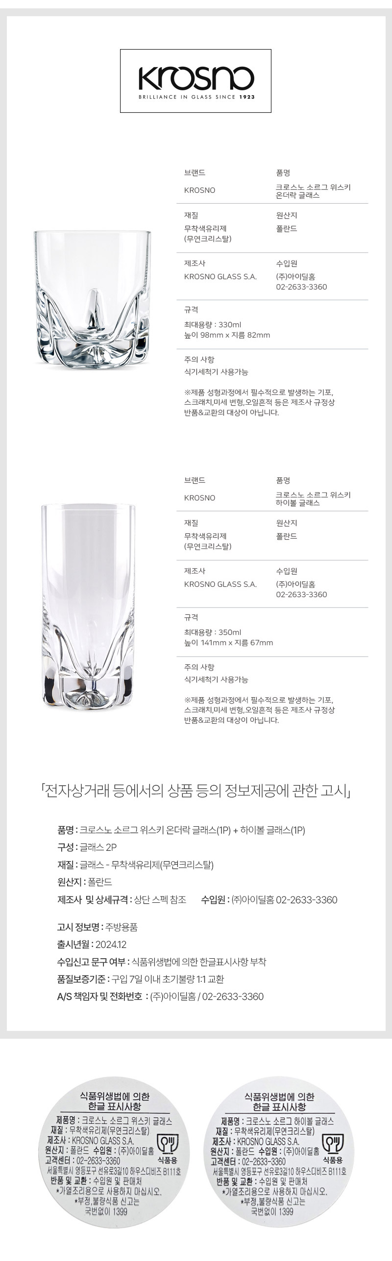 혼술족을 위한 크로스노 소르그 온더락1P+하이볼1P 세트