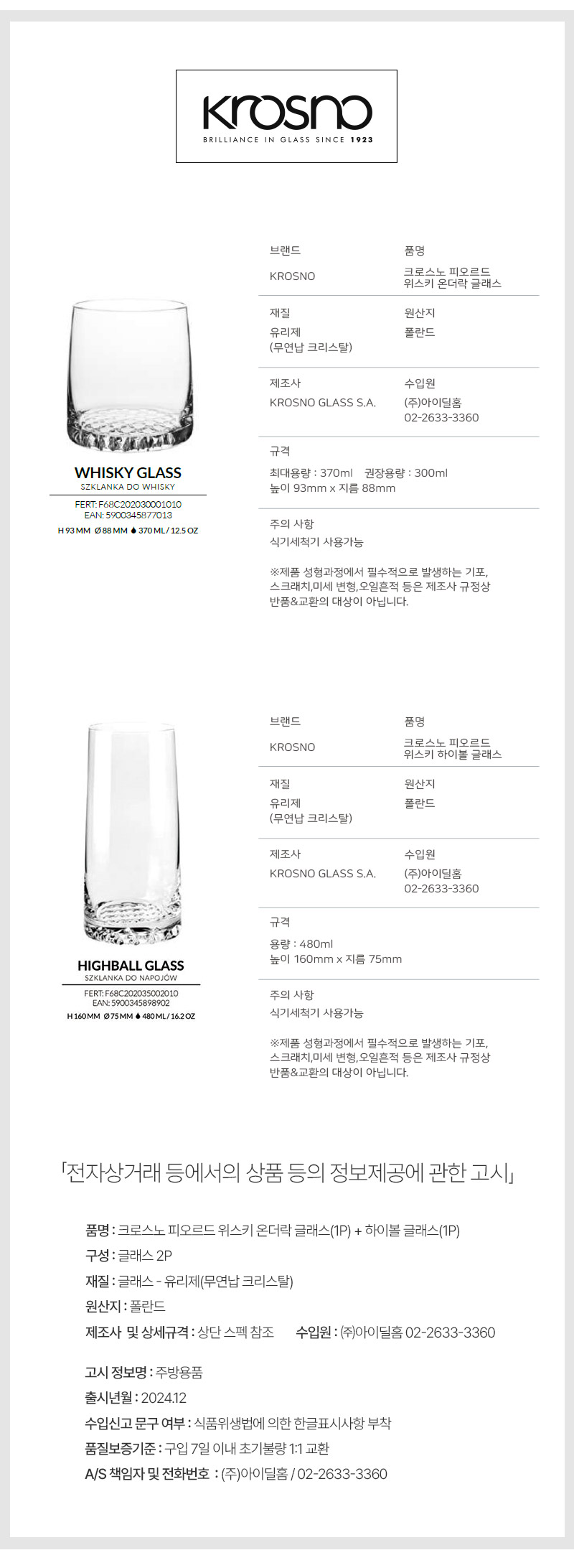 실속 유리컵 세트, 위스키 전용잔, 혼술 전용 유리잔, 홈바 잔 세트, 2P 글라스 구성